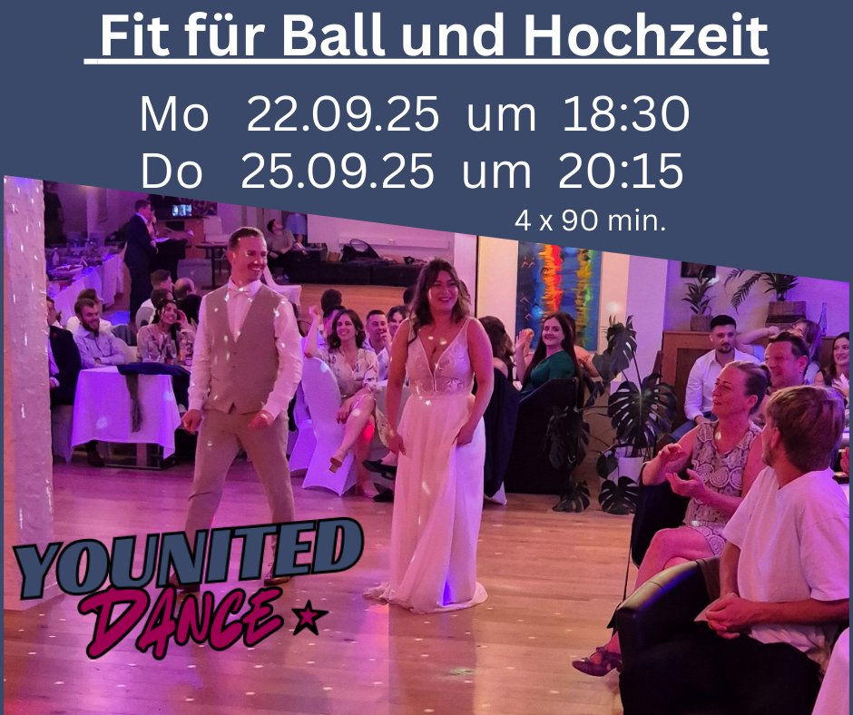 Wir machen Euch fit für eure Hochzeit, einen Ball oder ein Event. Mit Tipps und Tricks macht Ihr schnell eine gute Figur auf dem Tanzparket. Wir stehen mit Rat und Tat an Eurer Seite.
